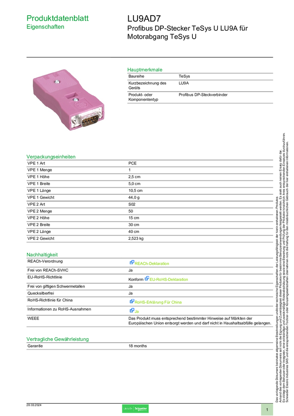 Schneider Electric LU9AD7 LU9AD7 Akcesorium do wyłącznika mocy 1 szt.