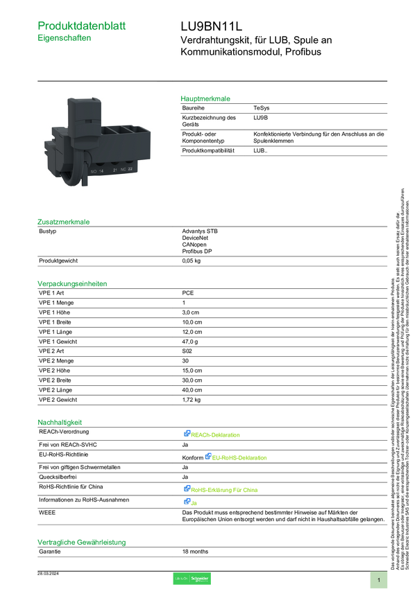 Schneider Electric LU9BN11L Akcesorium do wyłącznika mocy 1 szt.