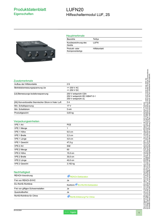 Przełącznik pomocniczy Schneider Electric LUFN02, 1 szt.