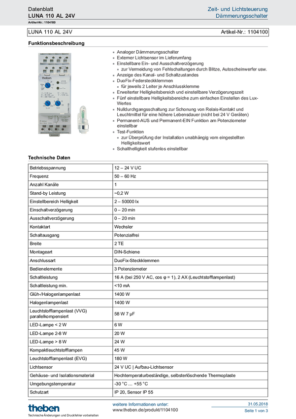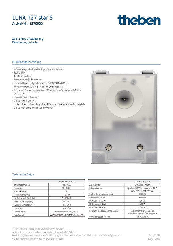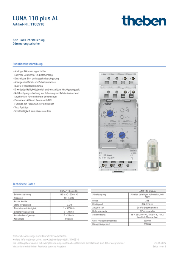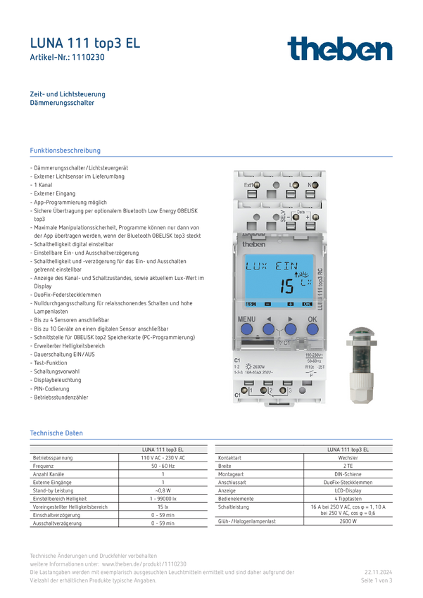 Theben LUNA 110 AL 1104100 Wyłącznik zmierzchowy