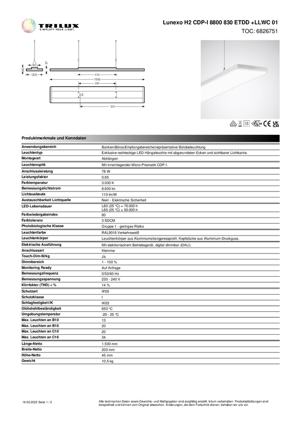 Lampa podwieszana LED Trilux Lunexo H2 #6825851 6825851 brak 87 W biały