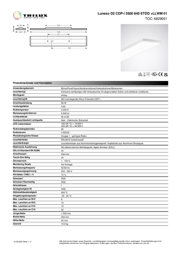 Lampa sufitowa LED Trilux Lunexo D2 #6829051 6829051 58 W 5500 lm biały