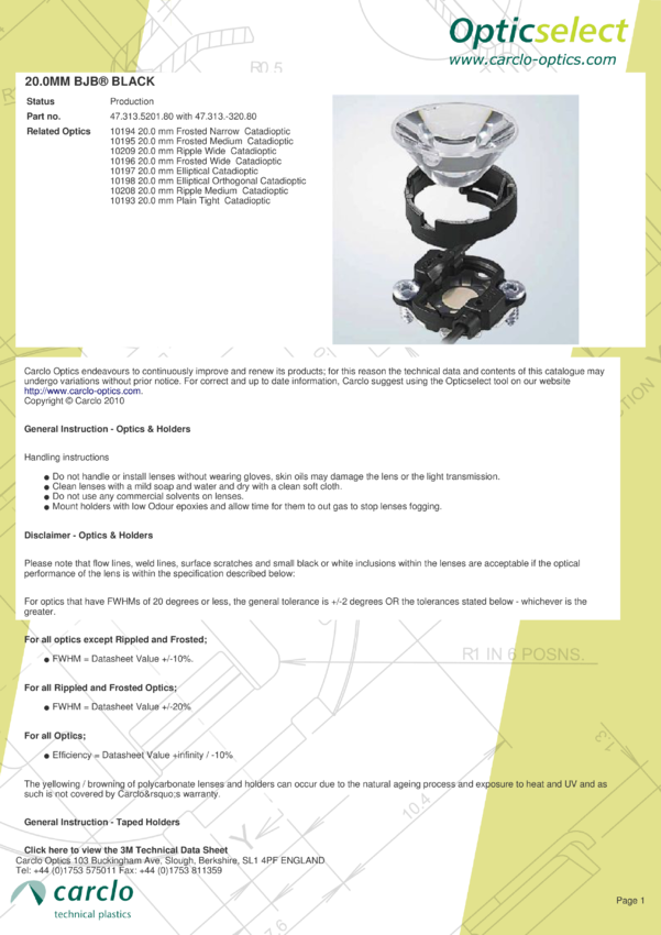 Złącze BJB 47.313.5201.80 wraz z holderem 47.313.-320.80 pod diody serii , soczewki i podłoże typu , bez konieczności lutowania przewodów, barwa czarna, montaż przy użyciu śrub M3, obciążalność 2A, 60VDC