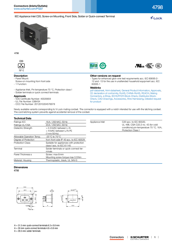 Złącze męskie C20 na panel przykręcane końcówki do lutowania
