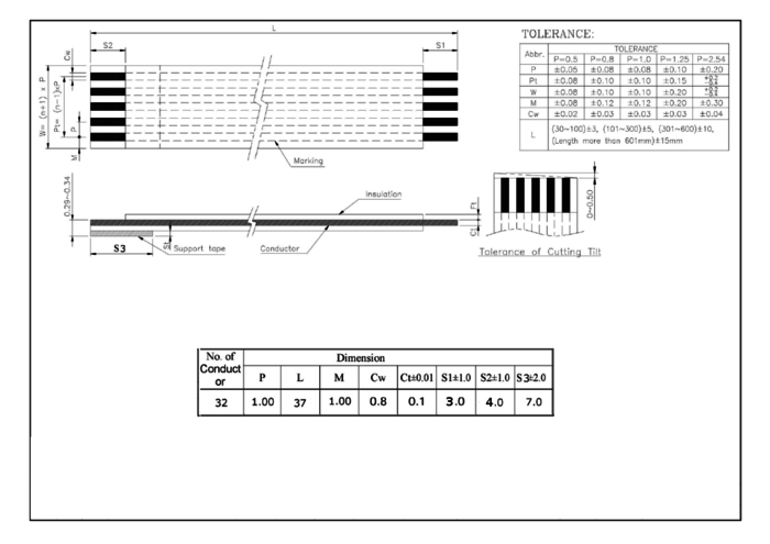 Taśma 32-ścieżkowa, typ B-jednostronnie lutowana do PCB, L=37mm, U=30V, temp. pracy 80°C, UL2896