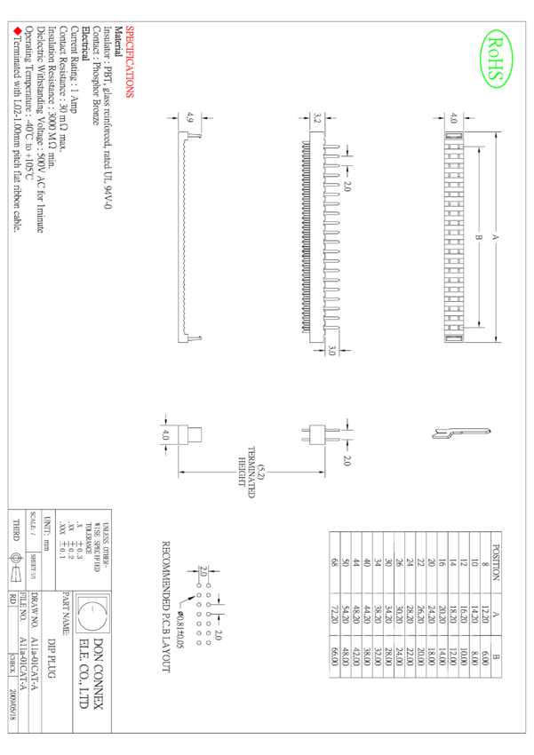 Złącze 10-stykowe, męskie, do taśmy, raster 2.00mm, lutowane do druku