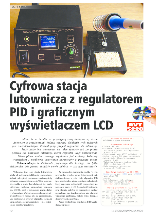 AVT5228 A+ Cyfrowa stacja lutownicza z regulatorem PID i graficznym wyświetlaczem LCD - płytka drukowana i zaprogramowany układ