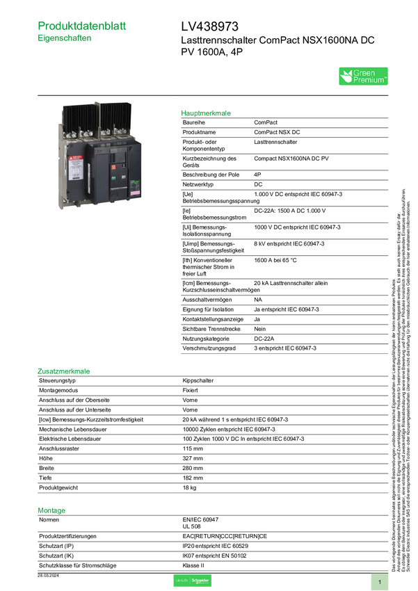 Schneider Electric LV438973 Rozłącznik 1 szt.