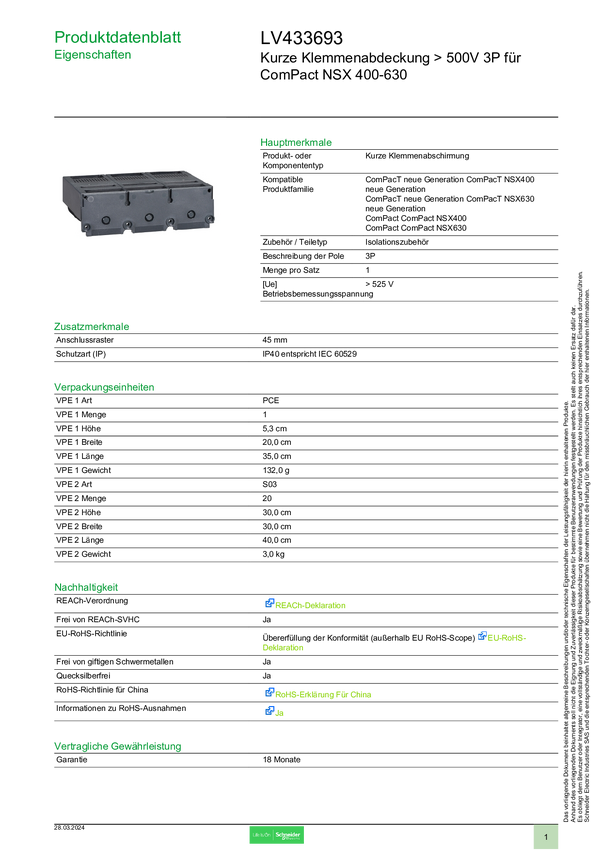 Schneider Electric LV433693 Akcesorium do wyłącznika mocy 1 szt.