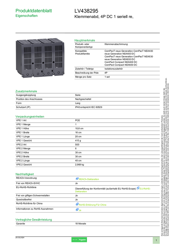 Schneider Electric LV438295 Akcesorium do wyłącznika mocy 1 szt.