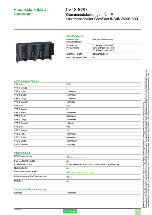Schneider Electric LV433639 Akcesorium do wyłącznika mocy 1 szt.