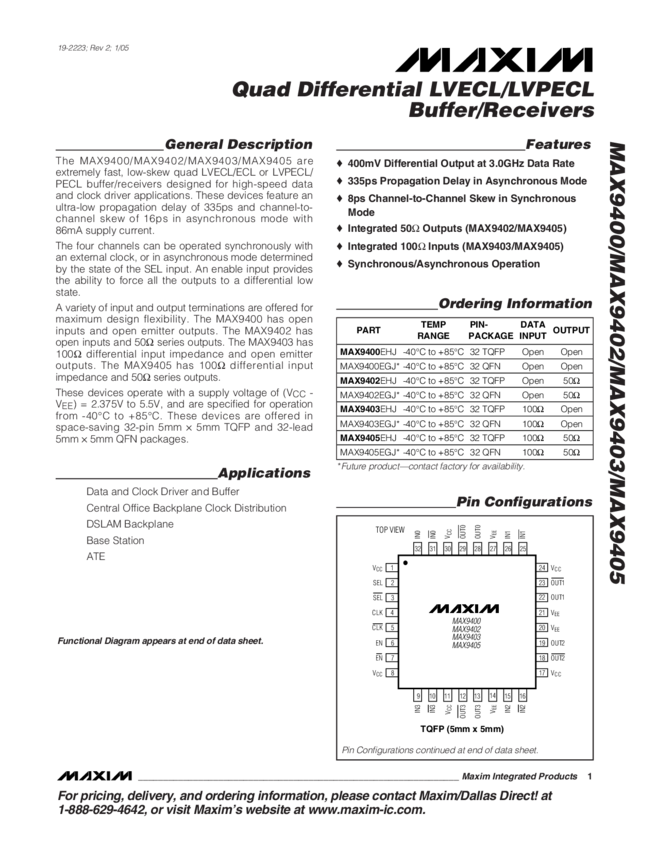 MAX9420, MAX9421, MAX9422, MAX9423 Quad Differential LVECL-to-LVPECL Translators