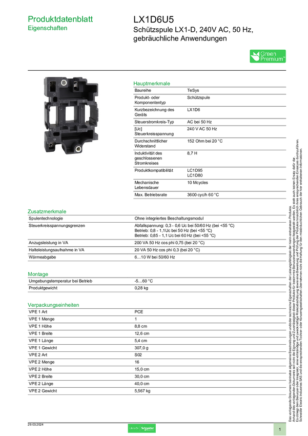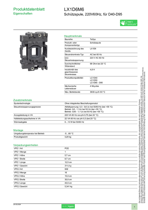 Stycznik Schneider Electric LX1D6L6, 1 szt.