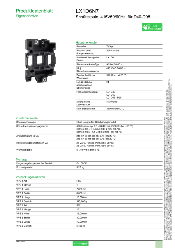 Stycznik Schneider Electric LX1D6E7, 1 szt.