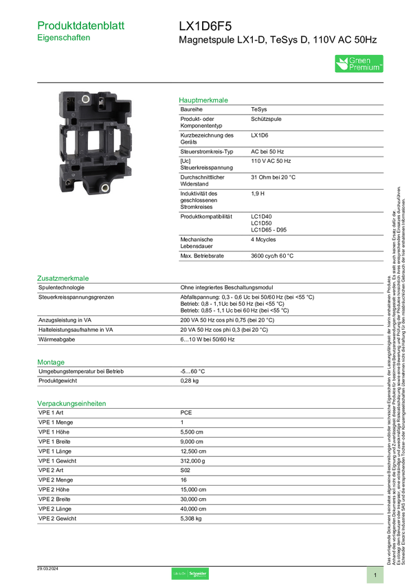 Stycznik Schneider Electric LX1D6B5, 1 szt.
