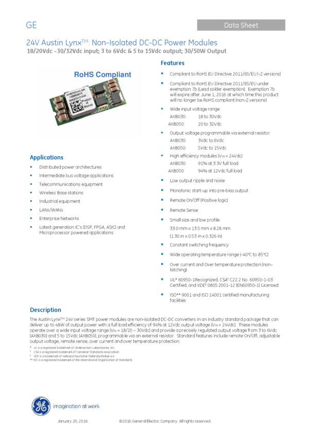AUSTIN LYNX 24V:NON-ISOLATED POWER MODULES 18/20-30VDC INPUT; 3.0 TO 6.0VDC 5.0 TO 15.0VDC OUTPUT; 30 50W
