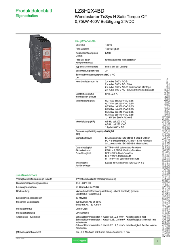 Schneider Electric LZ8H2X4BD LZ8H2X4BD Rozrusznik nawrotny