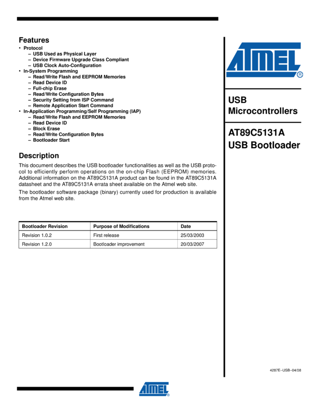 8-Bit Flash Microcontroller, Full-Speed USB Device