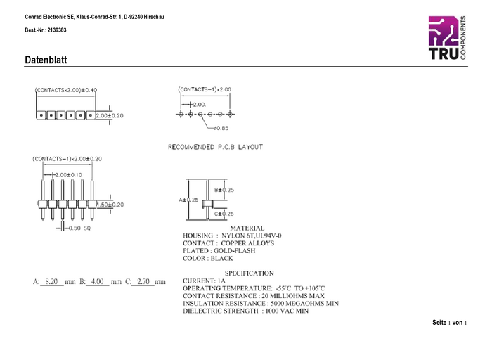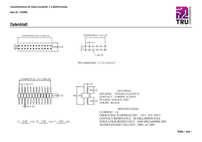 TRU COMPONENTS TC-2506381 Listwa złączy męskich (standardowa) 1 szt.