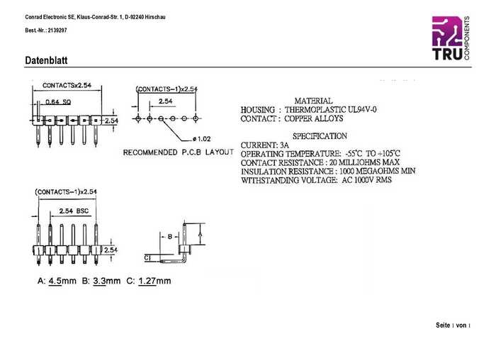TRU COMPONENTS TC-2506331 Listwa złączy męskich (standardowa) 1 szt.