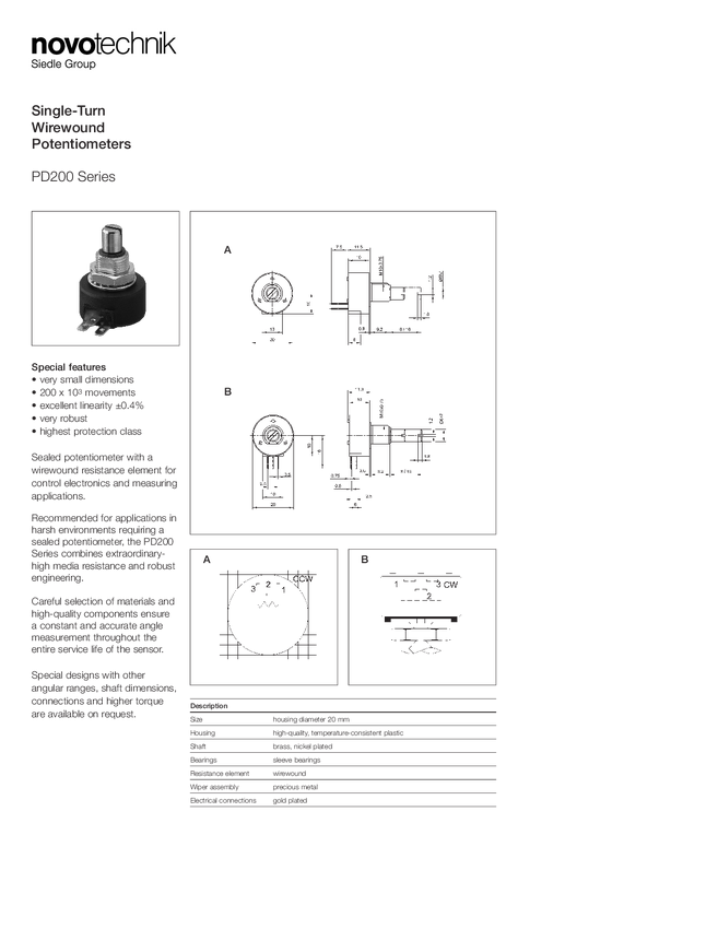 Potencjometr drutowy podwójny na bazie korpusu PD210 Conteleca; Moc 2W; Tolerancja 5%; Liniowość ; kąt el.318 st Kąt pracy mech 320 stopni(stopy); ośka 6,00mm dł. 25mm(16mm) 72465 średnica bębna 20mm; głębokość bębna 21,4mm; gwint m10x0,75 dł. 9,2 mm; gwint ścięty na 9mm; ( patrz strona 4 katalogu pd200_scan.pdf) Model PD2 210-4F-MB Element podobny zamiennik różniący się producentem i nieznacznie konstrukcją - w większości zastosowań można go użyć w miejscu oryg inału to: Potencjometr podwójny Sakae PMSFCP2