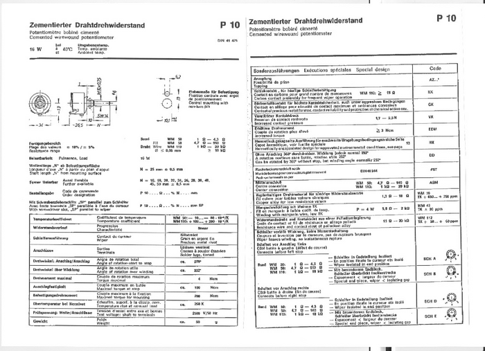 Potencjometr drutowy 60W; Bushing M10x0.75 ; średnica 53mm, gł.49mm; ośka 6mm; dł.22mm; kąt el.262 st.; kąt mech 282 st Tolerancja 10 % (lub 20%) ; liniowość producent nie podaje Zamiennik ( prawie identyczny wymiary, mniejsza moc : PM50W-10