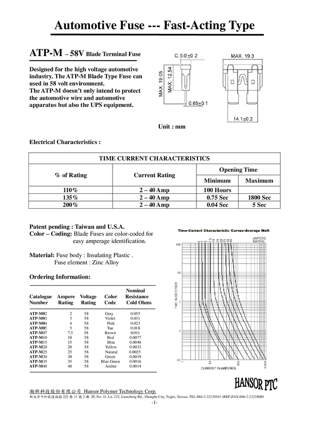 Hansor ATP-M15 Bezpiecznik nożowy samochodowy, 58 V, 15 A, 1 szt.