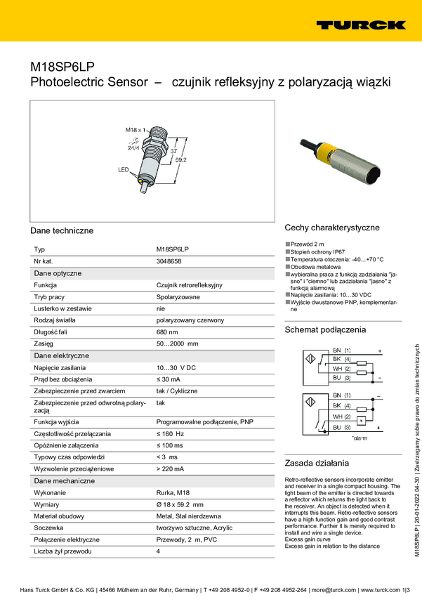 Fotokomórka odbiciowa Turck M18SP6LP 3048658 1 szt.