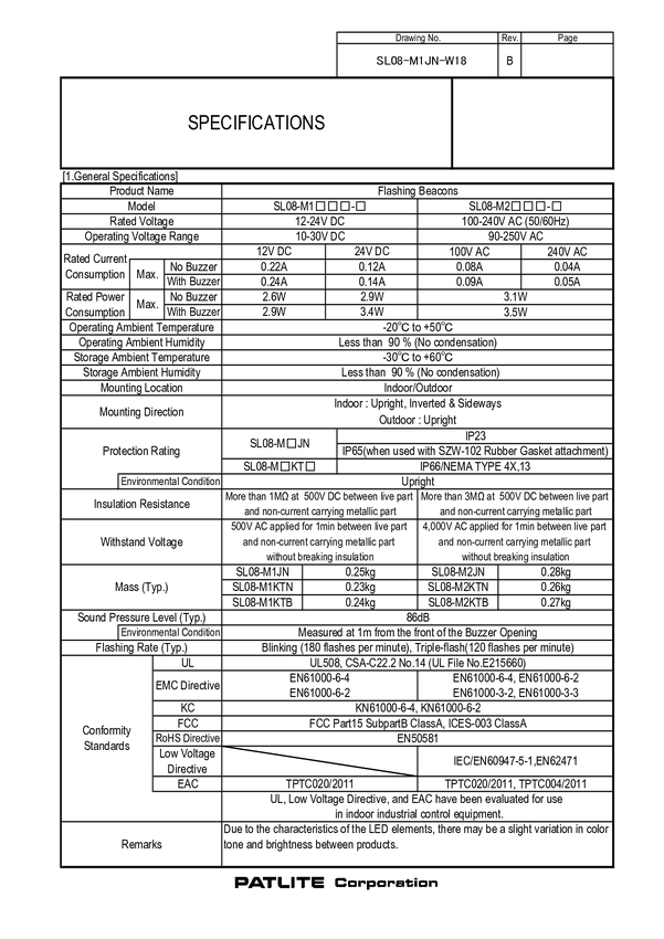 Sygnalizator świetlny Patlite SL08-M1KTN-G zielony Flesz 12 V/DC, 24 V/DC