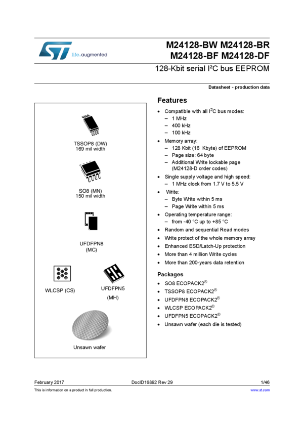 128-Kbit serial I2C bus EEPROM 105°C operation