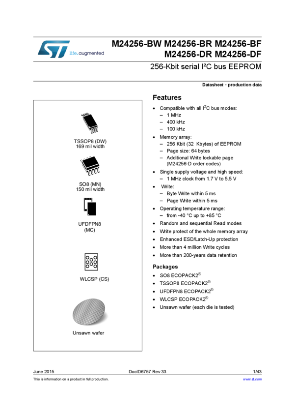 256 Kbit serial I2C bus EEPROM