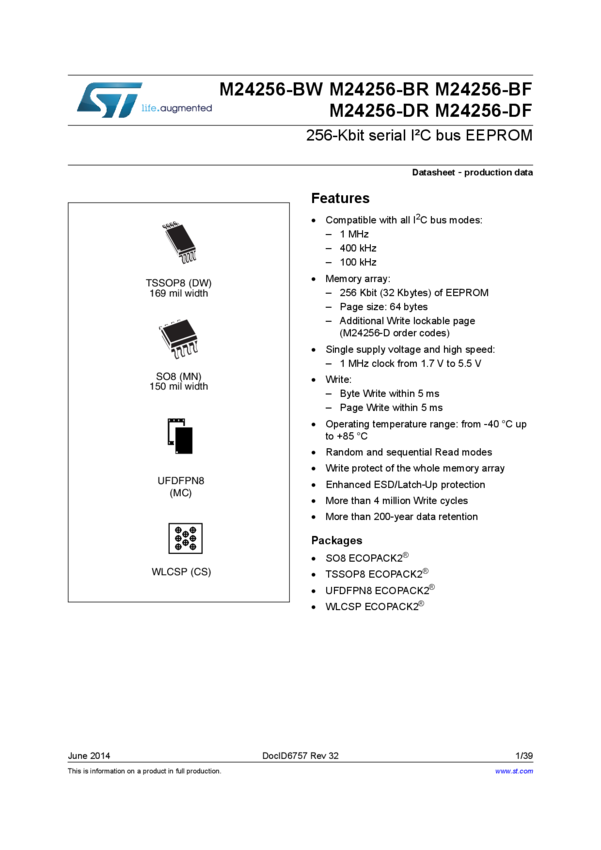 256 Kbit Serial I2C Bus EEPROM
