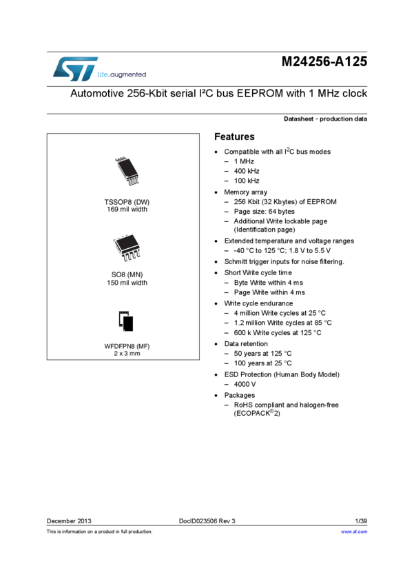 Automotive 256 Kbit serial I2C bus EEPROM