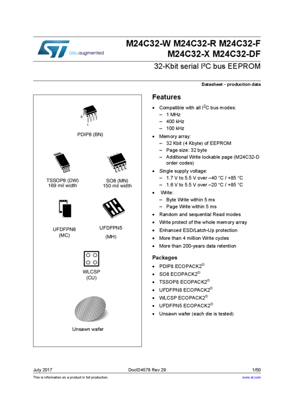 32-Kbit serial I2C bus EEPROM 105°C operation