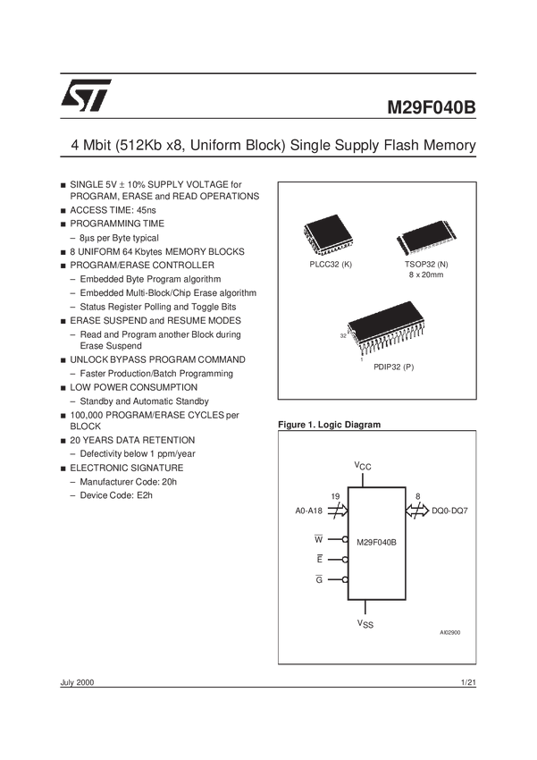 4MB(512KBX8UNIFORM BLOCK)5V TSOP32 (8X20) -40+85 ST