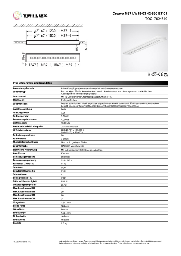 Lampa sufitowa LED Trilux Creavo M37 #7624840 7624840 26 W 4000 lm biały