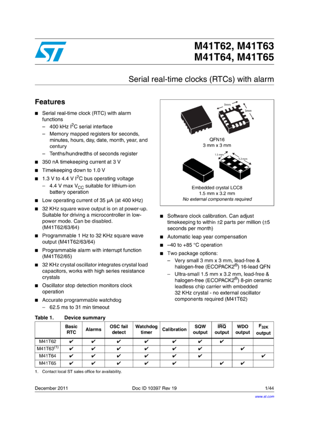 Serial real-time clock (RTC) with 44 bytes NVRAM and reset