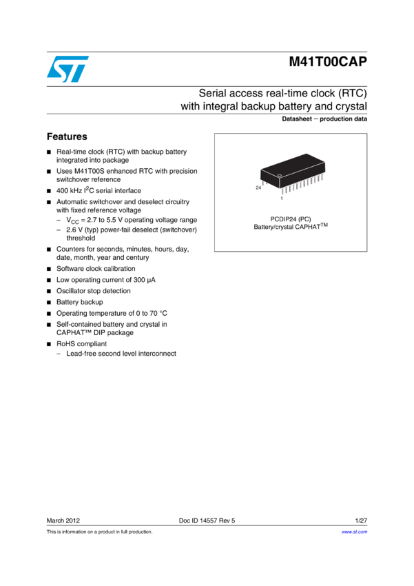 Serial real-time clock (RTC) with 56 bytes of NVRAM