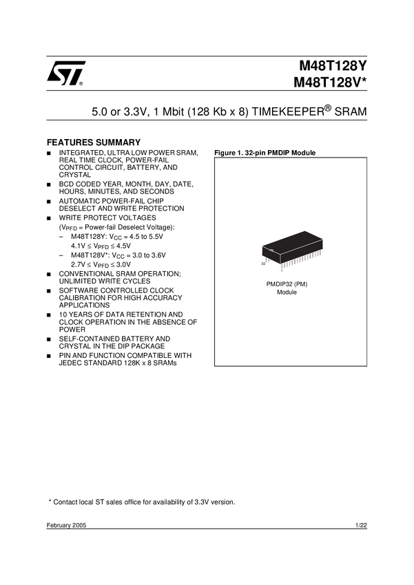 Timekeeper 1Mbit = 128kb x 8 ; DIP32 5V