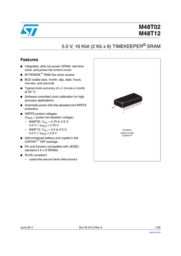 Timek. 2Kx8 150ns 0-70C DIP24 proponujemy ze składu M48t02-70PC1 LUB m48t12-70PC1