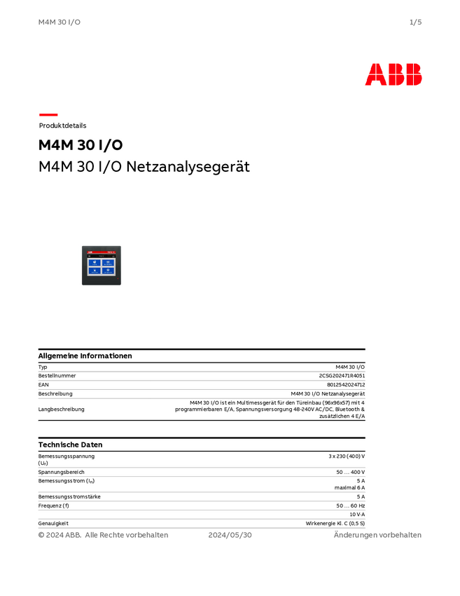Analizator sieci ABB M4M 30 I/O 2CSG202471R4051