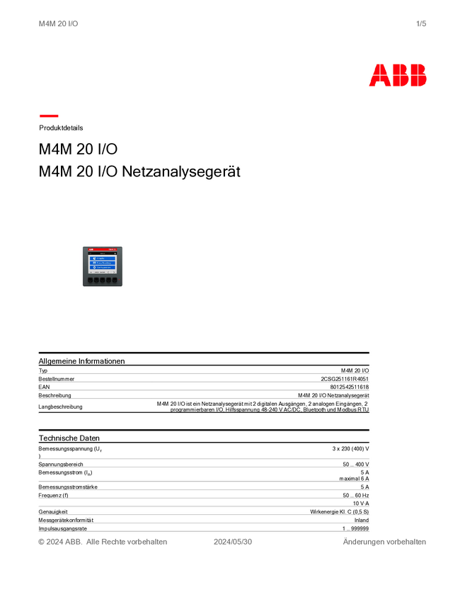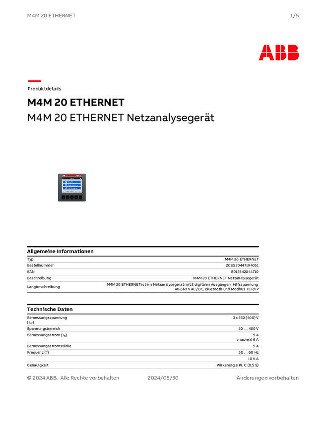 Analizator sieci ABB M4M 20 ETHERNET 2CSG204471R4051