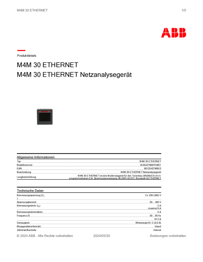 Analizator sieci ABB M4M 30 ETHERNET 2CSG274681R4051
