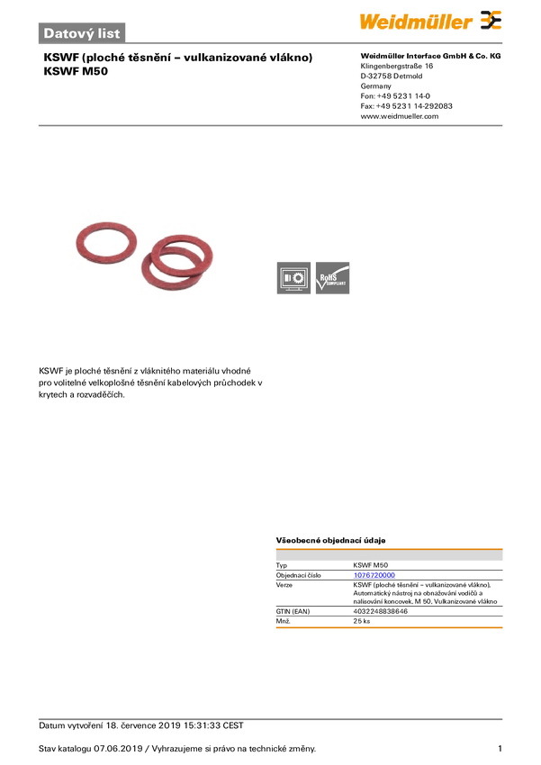 Weidmüller 1076720000 Uszczelka pierścieniowa KSWF M50, M50, 25 szt.