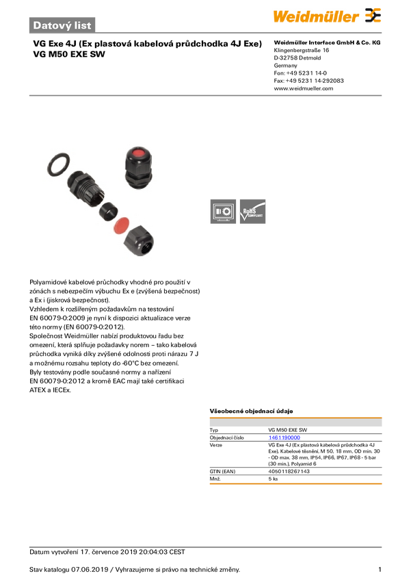 Weidmüller 1461190000 Dławnica kablowa M50 poliamid czarny 5 szt.