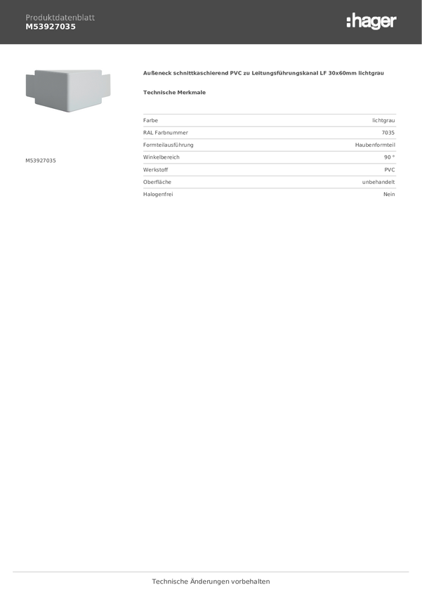 Narożnik zewnętrzny Hager M53927035 1 szt.