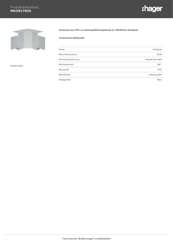 Kątownik wewnętrzny Hager M53917035 1 szt.