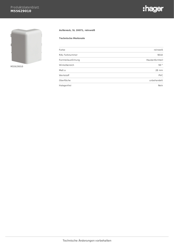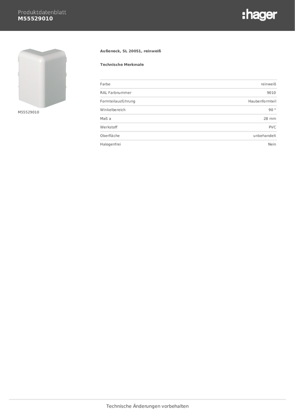 Narożnik zewnętrzny Hager M55529010 1 szt.