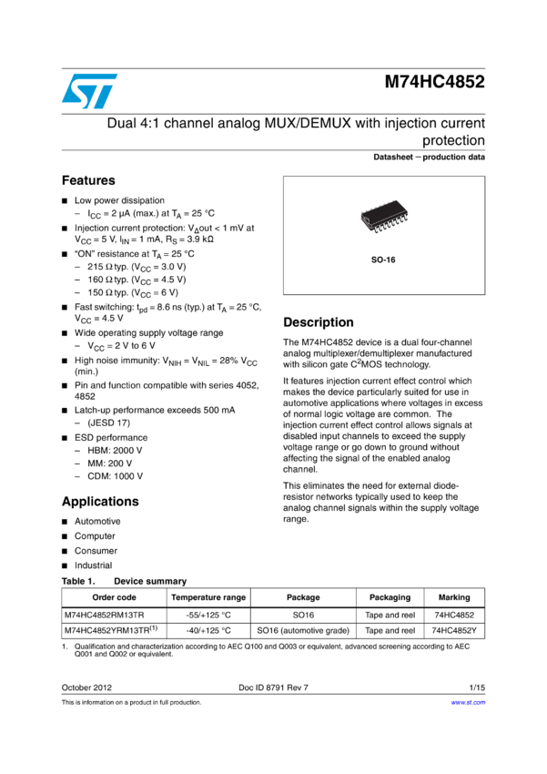 Dual 4-Channel Analog Multiplexer/Demultiplexer