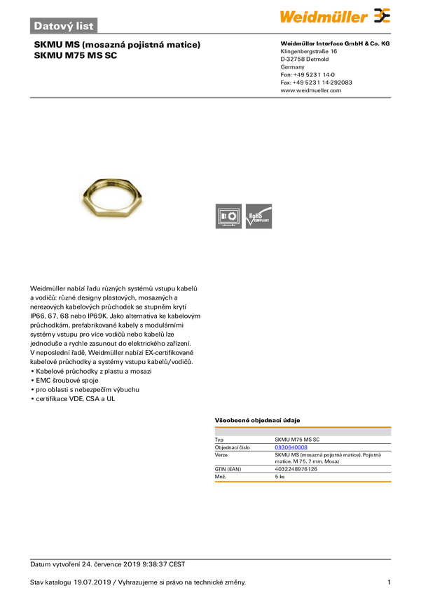 Weidmüller 0930640008 Nakrętka kontrująca SKMU M75 MS SC, M75, 5 szt.